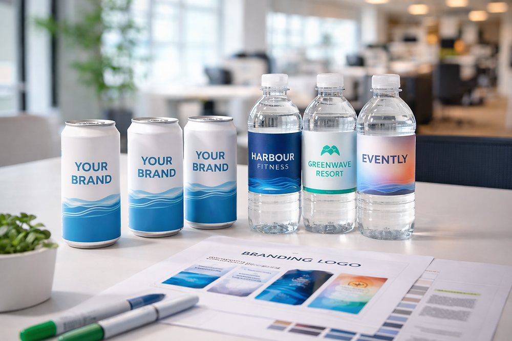 Launch your own private label bottled water in Australia with Aquaworks. Custom branded solutions across cans and PET bottles for hospitality, retail, and events, designed for premium presentation and reliable supply.